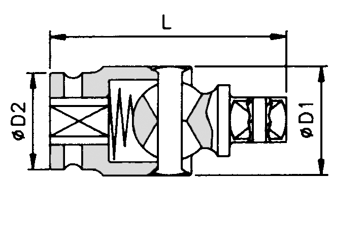 Universalknut 1/2" med hål | Med genomgående hål för säkring av krafthylsa |D2 = 32 mm | L = 60 mm | Vikt 0,21 Kg |